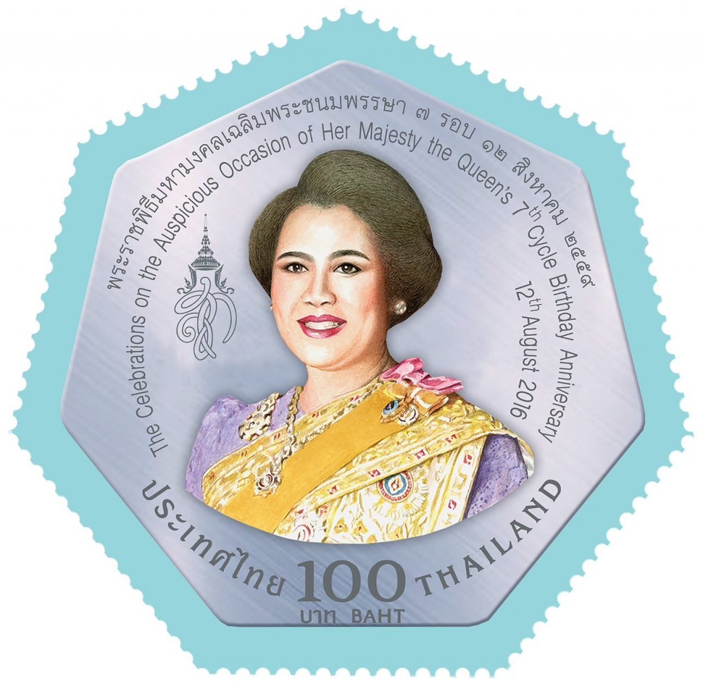 หนึ่งในชุดแสตมป์เฉลิมพระเกียรติที่ทรงคุณค่ายิ่ง คือ “แสตมป์ทองเฉลิมพระชนมพรรษา 7 รอบ ครบ 84 พรรษา” ซึ่งจัดพิมพ์เป็นที่ระลึก สมเด็จพระนางเจ้าสิริกิติ์ พระบรมราชินีนาถ พระบรมราชชนนีพันปีหลวง เมื่อวันที่ 12 สิงหาคม พ.ศ. 2559 ถือเป็นหนึ่งในชุดที่งดงามและทรงคุณค่าที่สุด โดดเด่นด้วยรูปทรง 7 เหลี่ยม สื่อถึงพระชนมายุ ครบ 7 รอบ ใช้เทคนิคการพิมพ์ฟอยล์ทองคำ 22 กะรัต พร้อมปั๊มนูนด้วยระบบพิเศษ แสดงพระบรมฉายาลักษณ์สมเด็จพระนางเจ้าสิริกิติ์ พระบรมราชินีนาถ พระบรมราชชนนีพันปีหลวง บนพื้นโทนฟ้าเปล่งประกายงดงามเป็นเอกลักษณ์ แสตมป์แต่ละดวงมีมูลค่า100 บาท และจำหน่ายพร้อมซองวันแรกจำหน่ายราคา 117 บาท ผลิตจำกัดจำนวนเพียง 500,000 ชุดทั่วประเทศเท่านั้น